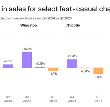 Just 12 months ago, Chipotle, Cava and Sweetgreen were Wall Street darlings—posting stock gains of 150-189% and trading at eye-watering multiples. Cava hit 243x forward P/E. Investors extrapolated double-digit same-store sales growth into perpetuity. Then reality hit.